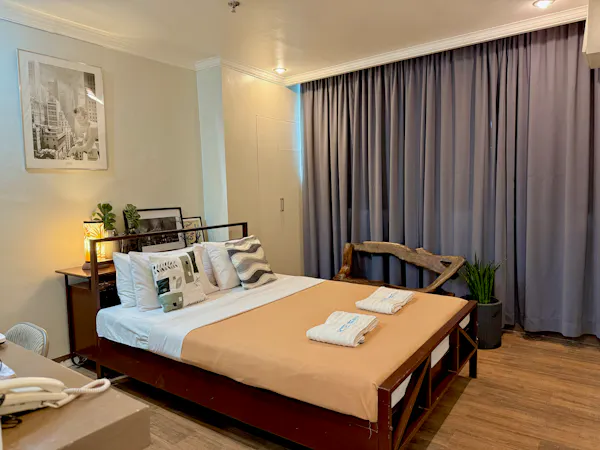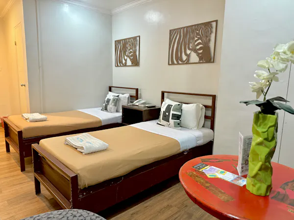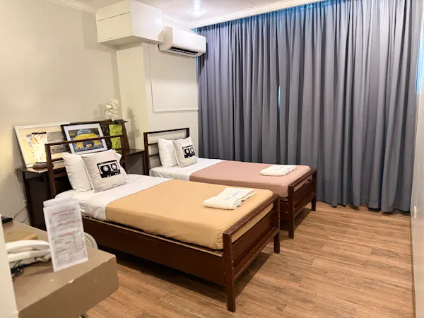 Perfect for friends or small families, our Junior Suite offers two comfortable beds, modern amenities, and a warm, inviting ambiance. Enjoy air-conditioning, a flat-screen TV, and stylish decor for a relaxing stay in the heart of Laoag.