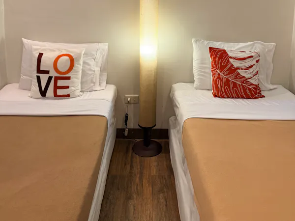 Ideal for travel buddies or colleagues, our Standard Twin Room features two cozy single beds, a work desk, air-conditioning, and warm lighting. Enjoy a comfortable and stylish stay with all the essentials you need.