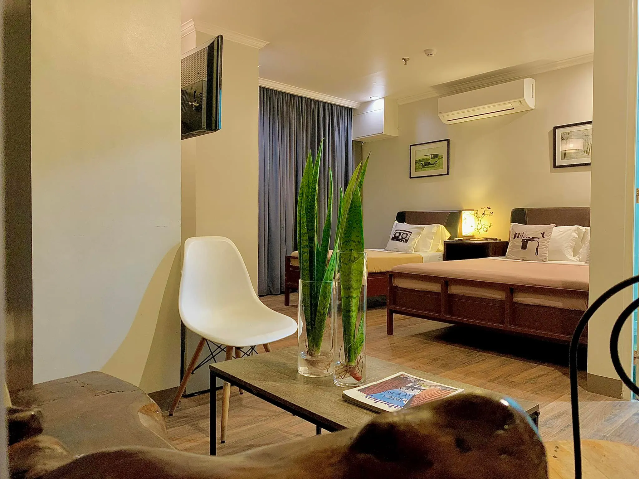 Spacious and cozy, our Family Room features one double bed and one single bed—perfect for small families or groups. Enjoy a relaxing stay with modern amenities, air conditioning, warm lighting, and tasteful decor for your comfort and convenience.