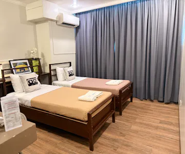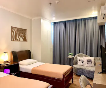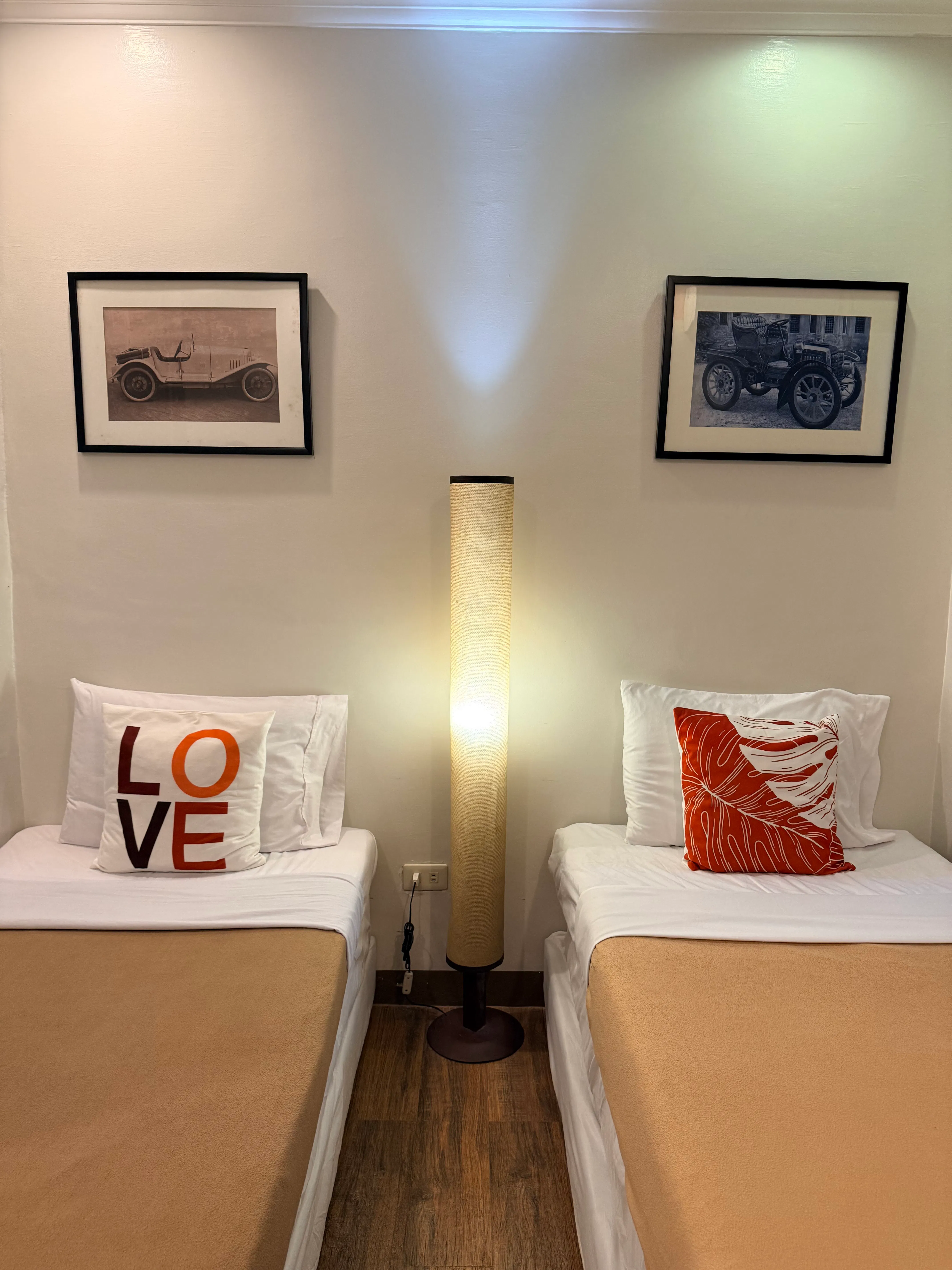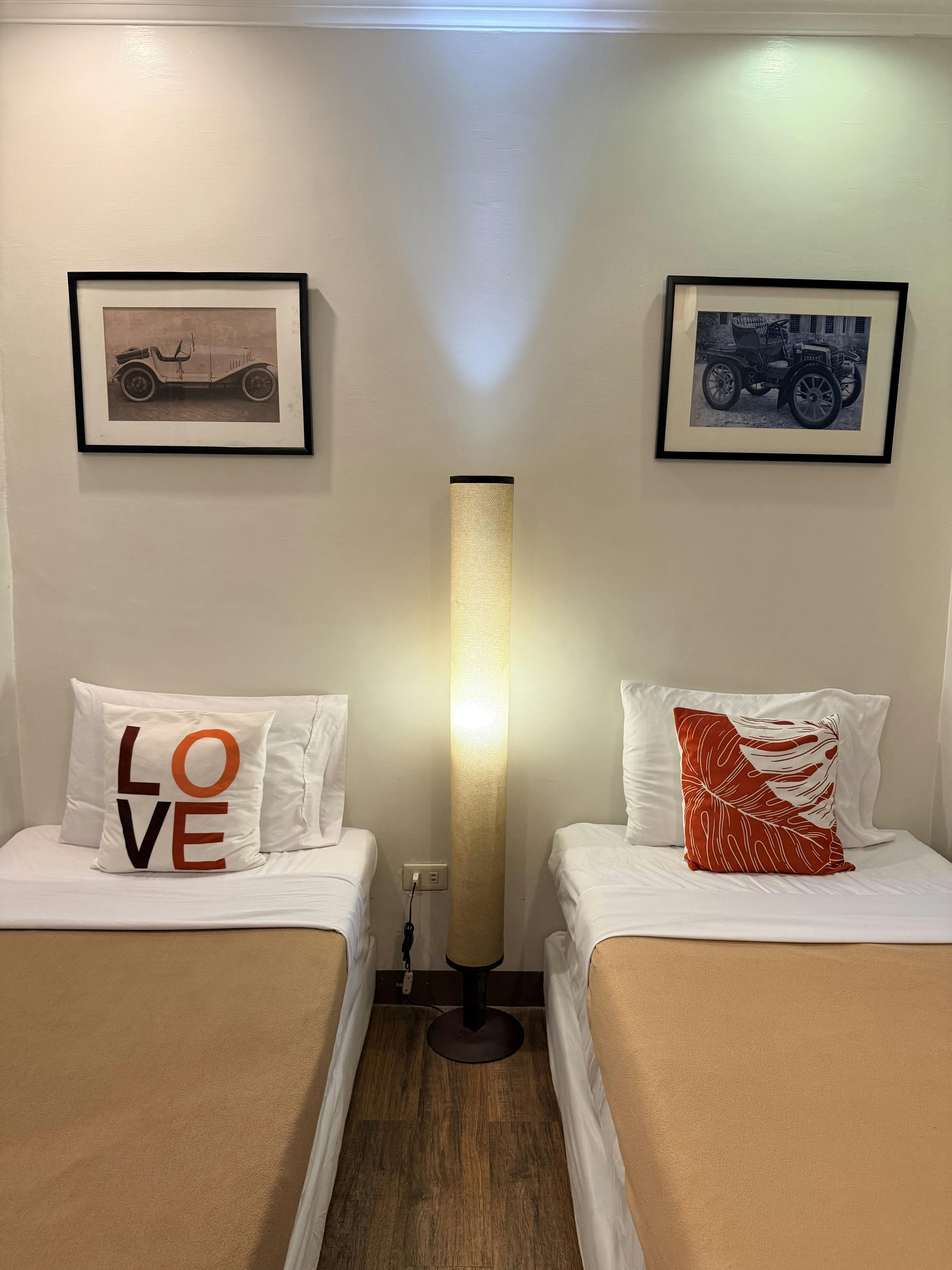 Ideal for travel buddies or colleagues, our Standard Twin Room features two cozy single beds, a work desk, air-conditioning, and warm lighting. Enjoy a comfortable and stylish stay with all the essentials you need.